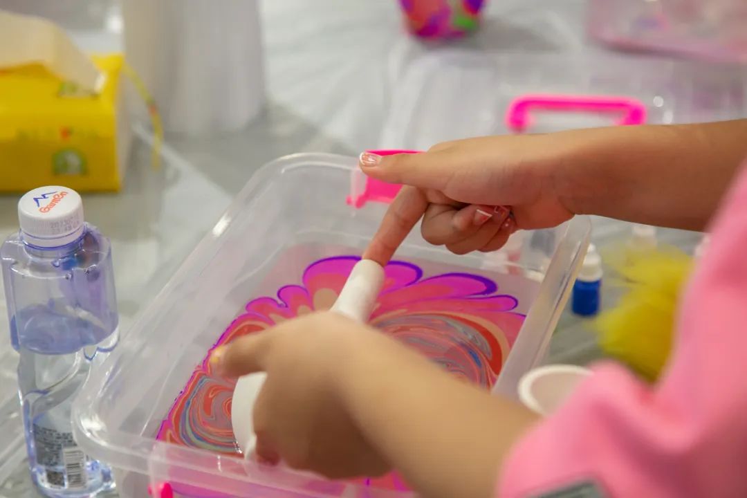 活動(dòng)現(xiàn)場(chǎng),志愿者向大家介紹水拓畫和水拓花瓶的知識(shí)并進(jìn)行演示制作,30組家庭在志愿者的指導(dǎo)下動(dòng)手制作,倒水、挑色、作畫、覆瓶,在輕松歡樂(lè)的氛圍中,一幅幅色彩斑斕的水拓畫浮于水面,一只只獨(dú)一無(wú)二的水拓花瓶立于臺(tái)上。孩子們?cè)诨顒?dòng)中學(xué)習(xí)并感受水拓技術(shù)的魅力,進(jìn)一步激發(fā)了創(chuàng)造力和想象力,也促進(jìn)了親子間的互動(dòng)與協(xié)作,讓成長(zhǎng)更有“溫度”。