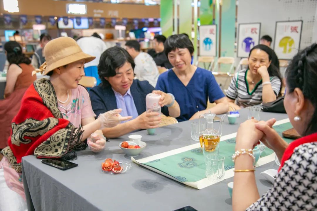 茶藝?yán)蠋煘榇蠹規(guī)碛嘘P(guān)夏日飲茶知識,對茶葉的挑選、烹茶的方法 、泡茶的技巧逐一講解。在老師的指導(dǎo)下,茶客們嘗試沖泡、倒茶、品飲……現(xiàn)場彌漫著淡淡的茶香 ,清透涼爽的冷泡茶沁潤心田,化解了夏季的酷熱。
