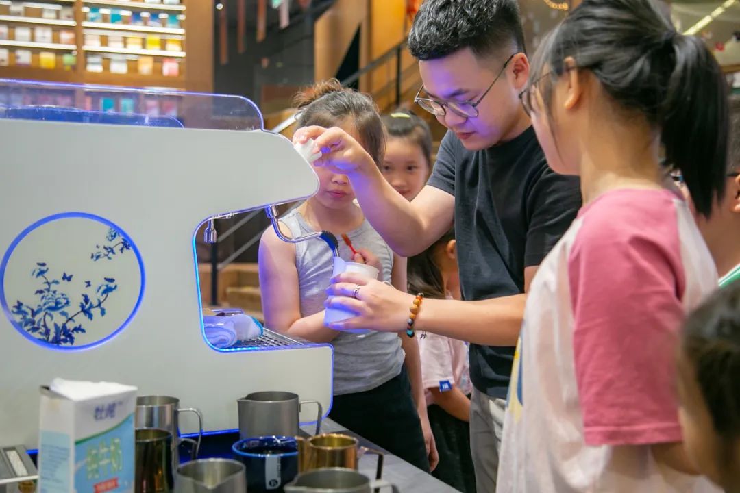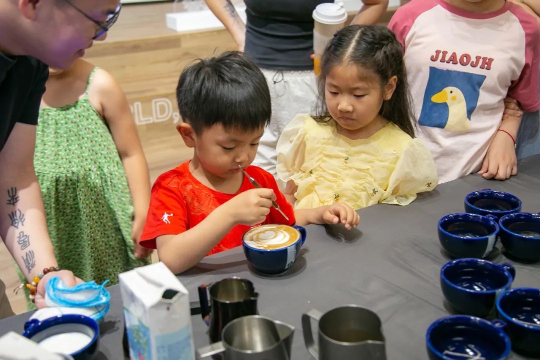 現(xiàn)場氣氛高漲,在咖啡師的指導(dǎo)和幫助下,大家傾斜著咖啡杯輕輕晃動著拉花缸,發(fā)揮自己的藝術(shù)創(chuàng)想,制作出一個個靈動可愛的圖案,度過了一段悠閑的夏日時光。