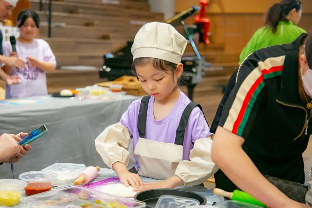 手工披薩DIY活動格外受到歡迎,中韓文化客廳特邀專業(yè)廚師,為大家備好所有的材料并現(xiàn)場示范。小朋友們換上小圍裙,秒變小廚師,在家長和大廚的協(xié)助下,小手生澀地?fù){制面皮,擺放自己喜歡的各種輔料。十幾分鐘后比薩就已經(jīng)陸陸續(xù)續(xù)的烤好,小朋友們迫不及待地與爸爸媽媽分享品嘗親手制作的比薩,現(xiàn)場溫馨甜蜜,每一瞬間都是愛與幸福的美好定格。