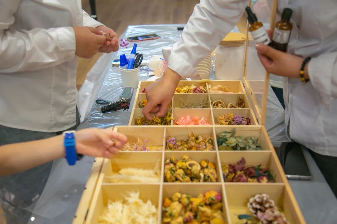 構(gòu)思造型、融化原蠟、滴入精油,再加上各式干花點綴,一個個造型各異、芬芳濃郁的干花香薰掛牌便制作完成了,擁有了一份屬于自己的獨特芬芳。