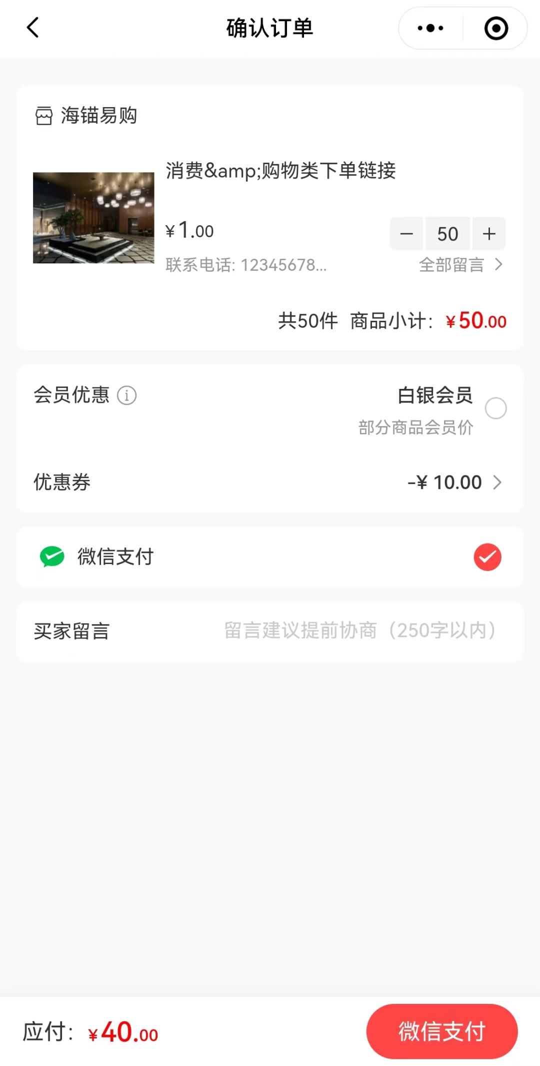 3、在“確認(rèn)訂單”頁面,領(lǐng)取到的消費(fèi)券在滿足使用門檻后即自動抵扣,確認(rèn)無誤后,點(diǎn)擊“微信支付”。