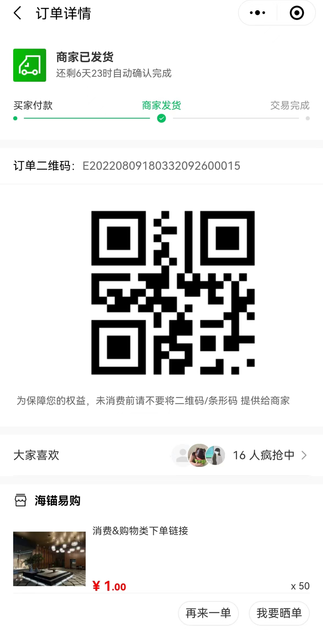 1、在商家消費(fèi)后,掃描平臺方提供給商戶的二維碼,點(diǎn)擊“立即購買”。