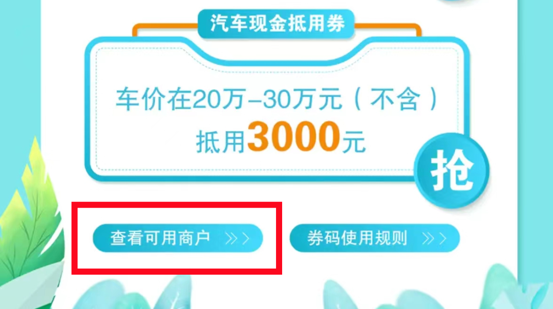 特別注意:車價大于等于30萬元的(不含稅價),不可使用任何一檔汽車現(xiàn)金抵用券。