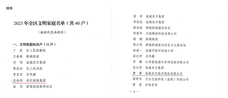 近日,區(qū)精神文明建設(shè)指導(dǎo)委員會(huì)評(píng)選出了40戶2023年全區(qū)文明家庭,集團(tuán)融資部沈祎瑋家庭被評(píng)為“文明家庭標(biāo)兵戶”,酒店公司唐靜家庭被評(píng)為“文明家庭”。