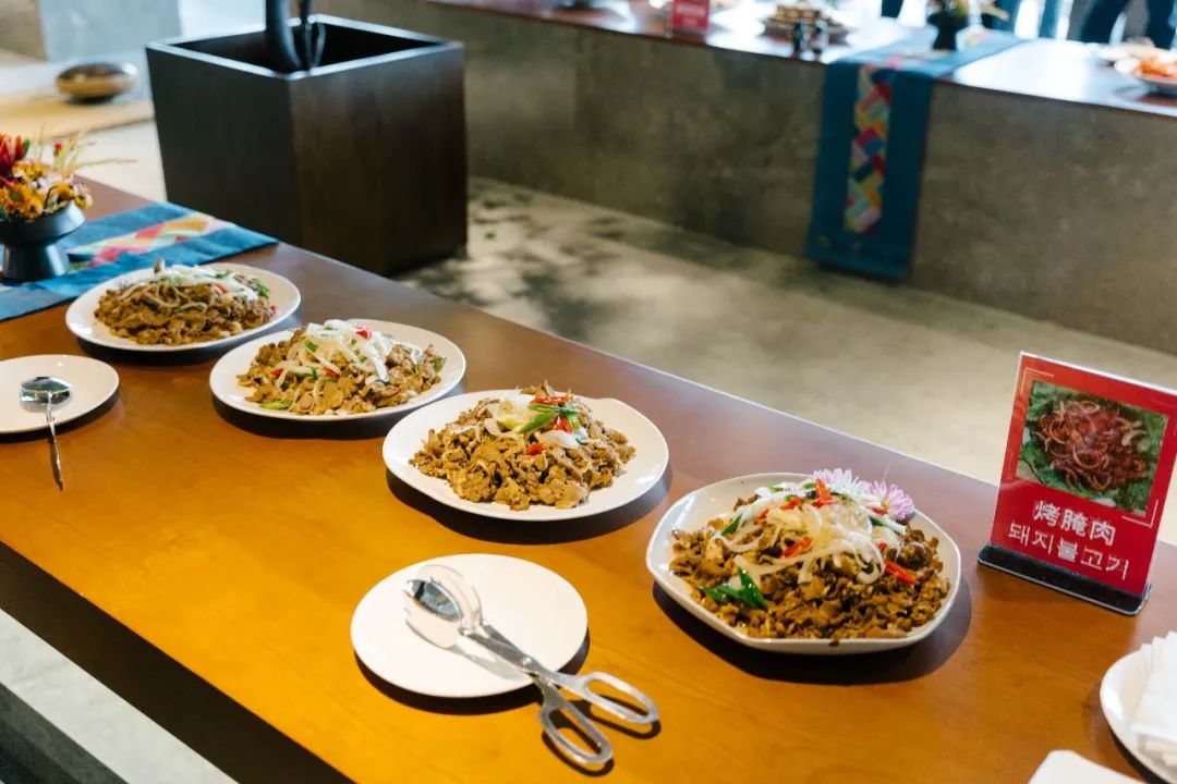 在中韓文化客廳三樓還設(shè)置了韓式餐飲體驗(yàn)區(qū),來(lái)自韓商會(huì)婦女聯(lián)合會(huì)的韓國(guó)料理老師們精心準(zhǔn)備了地道的韓國(guó)美食,炒年糕、海帶湯、牛肉餅等等美味俘獲了眾多參展者的心。