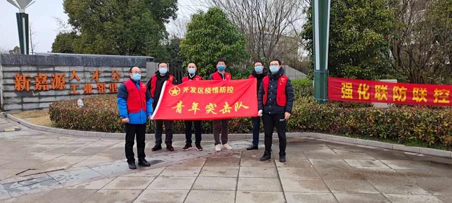 新嘉源人才公寓是開(kāi)發(fā)區(qū)外來(lái)務(wù)工人員重點(diǎn)的居住地,也是集團(tuán)旗下重要的資產(chǎn)項(xiàng)目,全區(qū)有4000多名各企業(yè)務(wù)工人員在這里居住,隨著全區(qū)企業(yè)的復(fù)工,來(lái)自天南海北的外來(lái)務(wù)工人員陸續(xù)返回,給疫情防控工作帶來(lái)巨大壓力。在得知這一消息后,世紀(jì)新城集團(tuán)第一黨支部、第二黨支部聯(lián)合集團(tuán)團(tuán)委向全體黨員、團(tuán)員發(fā)出號(hào)召,組建志愿者團(tuán)隊(duì),支援防控一線,“我報(bào)名!”“我要去”“我愿意”,微信群里瞬間有多名青年黨員、團(tuán)員響應(yīng),隨即由近20名青年組成的疫情防控青年突擊隊(duì)出發(fā)了。