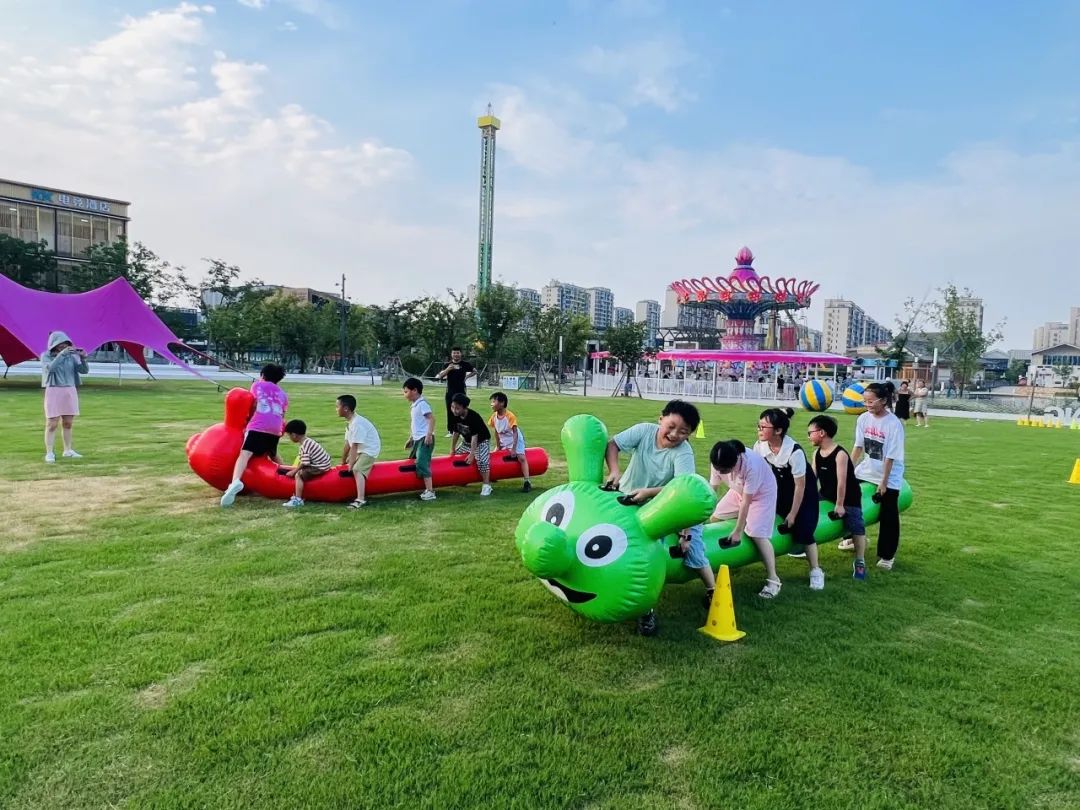 東大門草坪上,還為小朋友和家長安排了瘋狂毛毛蟲、螞蟻搬家等有趣好玩的互動(dòng)小游戲,只見小朋友們認(rèn)真分析游戲規(guī)則、總結(jié)游戲技巧、制定競賽策略,玩得不亦樂乎。家長們或在一旁觀看,或是加入其中,與孩子共享這份快樂時(shí)光。