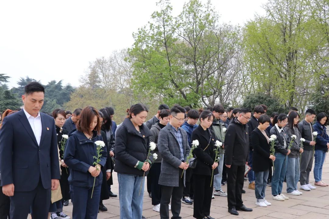 清明時節(jié),薄云淺淡,微雨初歇,雨花臺烈士陵園內(nèi)草色青青,青松翠柏環(huán)抱,為英烈殉難處和墓園遮上綠蔭。上午11時,黨員職工緩步踏上層層階梯,映入眼簾的雨花臺烈士陵園顯得格外肅穆。步入紀念廣場,兩岸青松翠,一路白花石,徐徐經(jīng)過花崗巖壁畫,黃紫相間的花壇恢宏地書寫“緬懷”二字,雨花臺烈士紀念碑矗立前方。黨員職工們走向莊嚴的烈士紀念碑,肅立于旁,手捧菊花,鞠躬默哀,敬獻花圈,深切緬懷革命先烈,表達對先烈的無限哀思和無盡的崇敬之情。