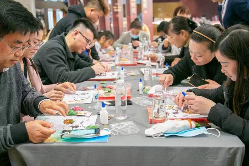 分享會結(jié)束后,志愿者們一同參加了“我心中的雷鋒”谷物畫創(chuàng)作。大家在老師的指導(dǎo)下,把常見的綠豆、黃豆、紅豆等谷物當作繪畫制作材料,通過手工拼貼,一粒一粒的精心描繪自己心中的雷鋒同志形象。