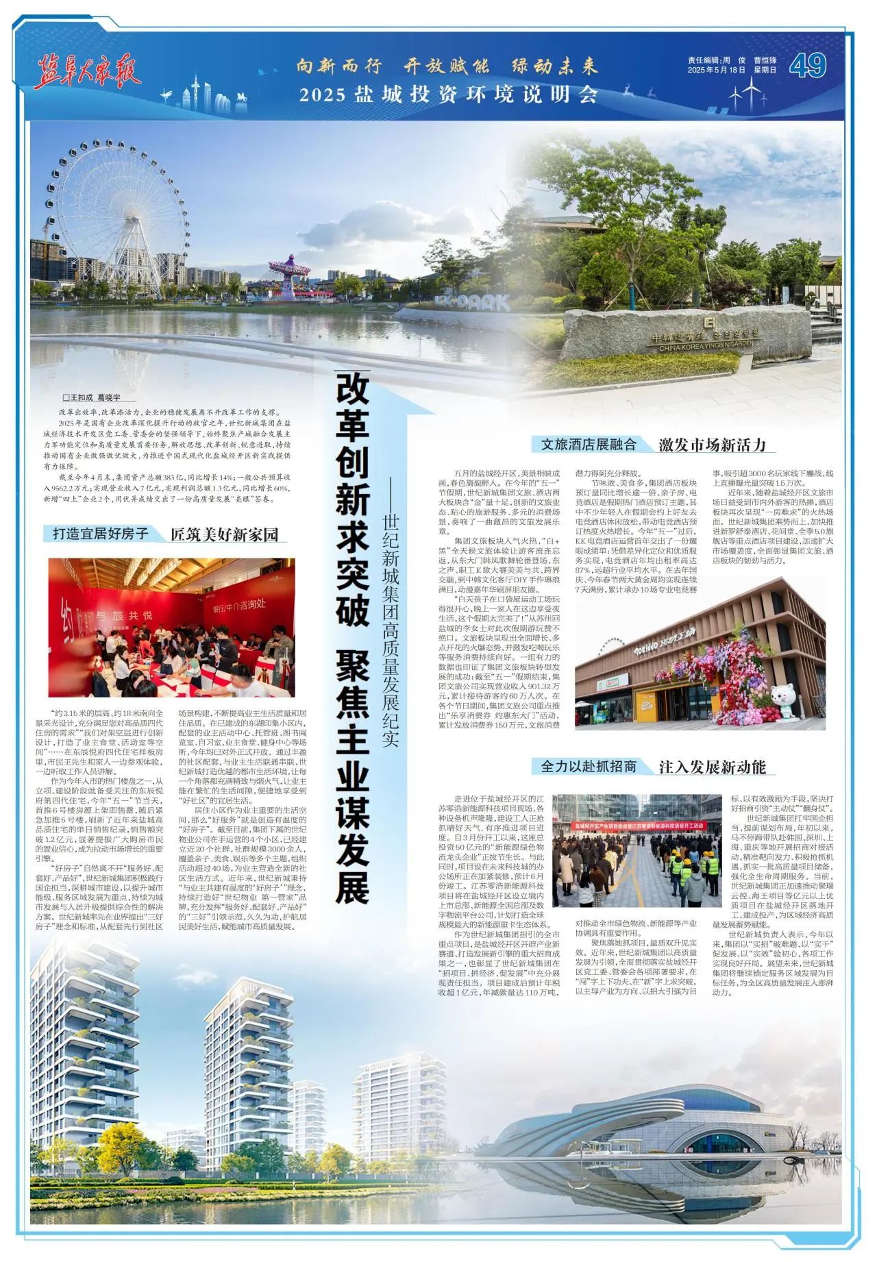 5月18日,鹽阜大眾報報業(yè)集團刊發(fā)了《改革創(chuàng)新求突破 聚焦主業(yè)謀發(fā)展——世紀新城集團高質(zhì)量發(fā)展紀實》,專版聚焦集團聚焦主責主業(yè)謀發(fā)展,做強做優(yōu)國企。