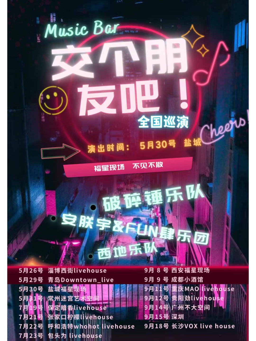 5月末音樂狂歡 | 沙漏&悶餅破碎錘樂隊/ 安朕宇&FUN肆樂團/ 西地樂隊,演出在即!