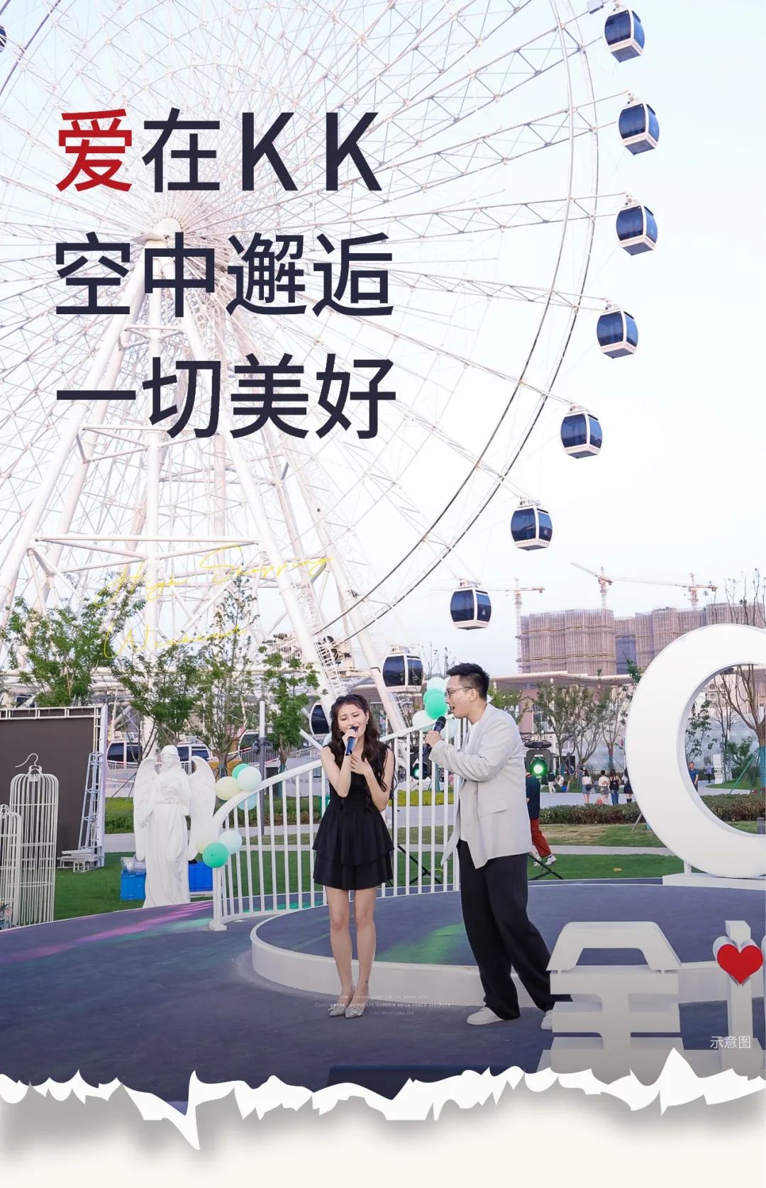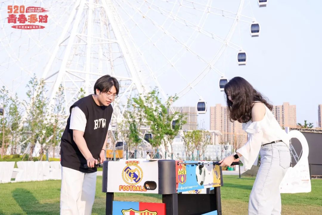 明媚的陽(yáng)光下,摩天輪載著滿滿的期待旋轉(zhuǎn)向上,抬頭就是遼闊的天空,低眼就是草坪、湖景。小小轎廂內(nèi)愛意滋生,空中邂逅的愛情,值得一輩子紀(jì)念。