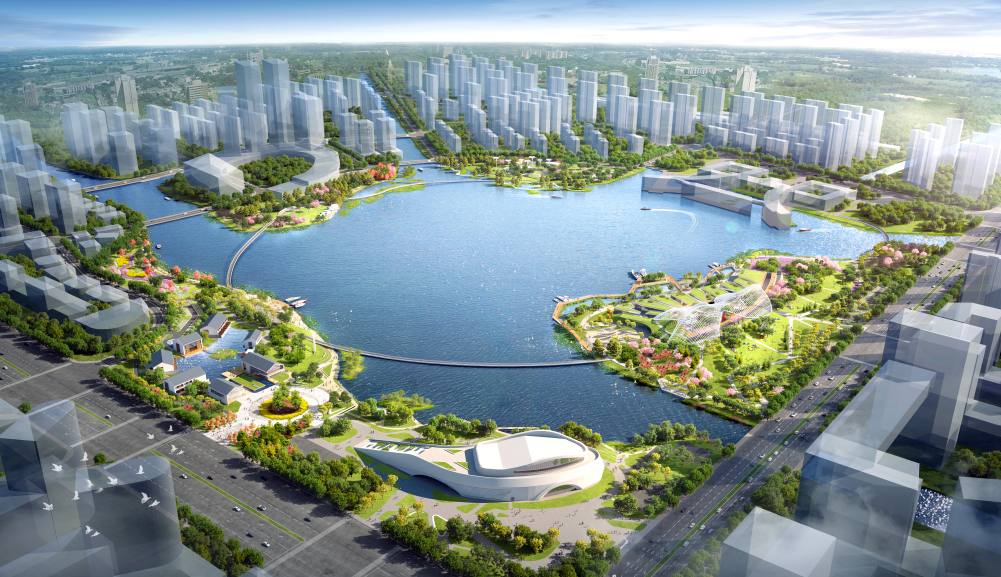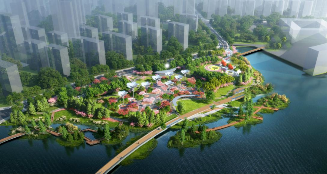 項(xiàng)目處于中韓(鹽城)產(chǎn)業(yè)園創(chuàng)新發(fā)展軸和韓風(fēng)文化名城核心帶的交匯處,其水域面積約32萬(wàn)平方米,公園建設(shè)面積約21.73萬(wàn)平方米。以這片水域?yàn)橹行?,共分東西南北為四個(gè)特色功能區(qū)域,分別承載時(shí)尚休閑、綠色療養(yǎng)、文化交流、創(chuàng)意體驗(yàn)等,其功能定位充分考慮了周邊居住、商務(wù)、產(chǎn)業(yè)、教育的分布及定位。
