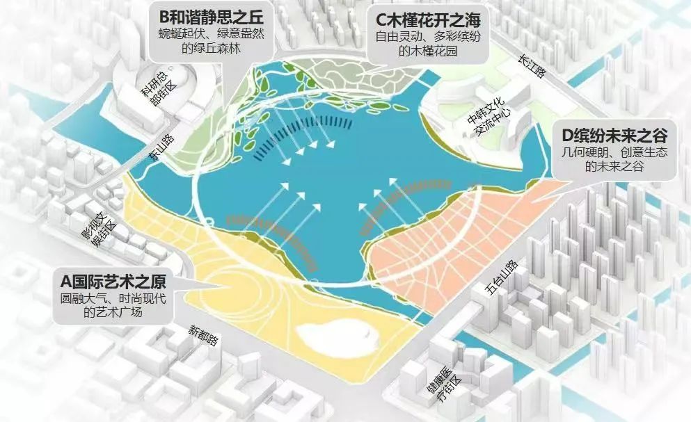 以“中韓文化圓融”為主題,打造中韓合作城市新地標(biāo)。承載的不僅是休閑游憩,更是集文化交流、綠色生態(tài)修復(fù)、城市窗口、濱水創(chuàng)意體驗(yàn)于一體的現(xiàn)代化國際文化公園。