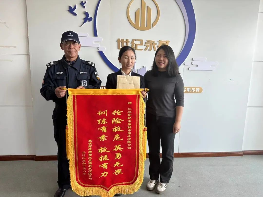 “業(yè)主的認(rèn)可對我們而言,不僅僅是榮譽(yù),更是一種責(zé)任和動力。”世紀(jì)永基物業(yè)員工徐勇說到。10月8日上午,集團(tuán)下屬公司世紀(jì)永基物業(yè)收到了來自鹽城阿特斯陽光能源科技有限公司陶女士送來的印有“搶險(xiǎn)救危、英勇無畏、訓(xùn)練有素、救援有力”字樣的錦旗,對世紀(jì)永基物業(yè)工作人員盡職盡責(zé)的服務(wù)表示誠摯感謝。一面錦旗,一句感謝,不僅是包含了業(yè)主對物業(yè)的感謝,更加反映出物業(yè)對業(yè)主的初心,彰顯世紀(jì)物業(yè)人的良好素質(zhì)與優(yōu)良品德,是世紀(jì)物業(yè)品質(zhì)管理的見證。