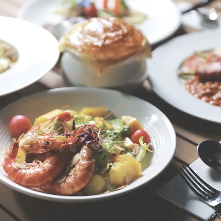 酥皮海鮮濃湯 芒果大青蝦沙拉