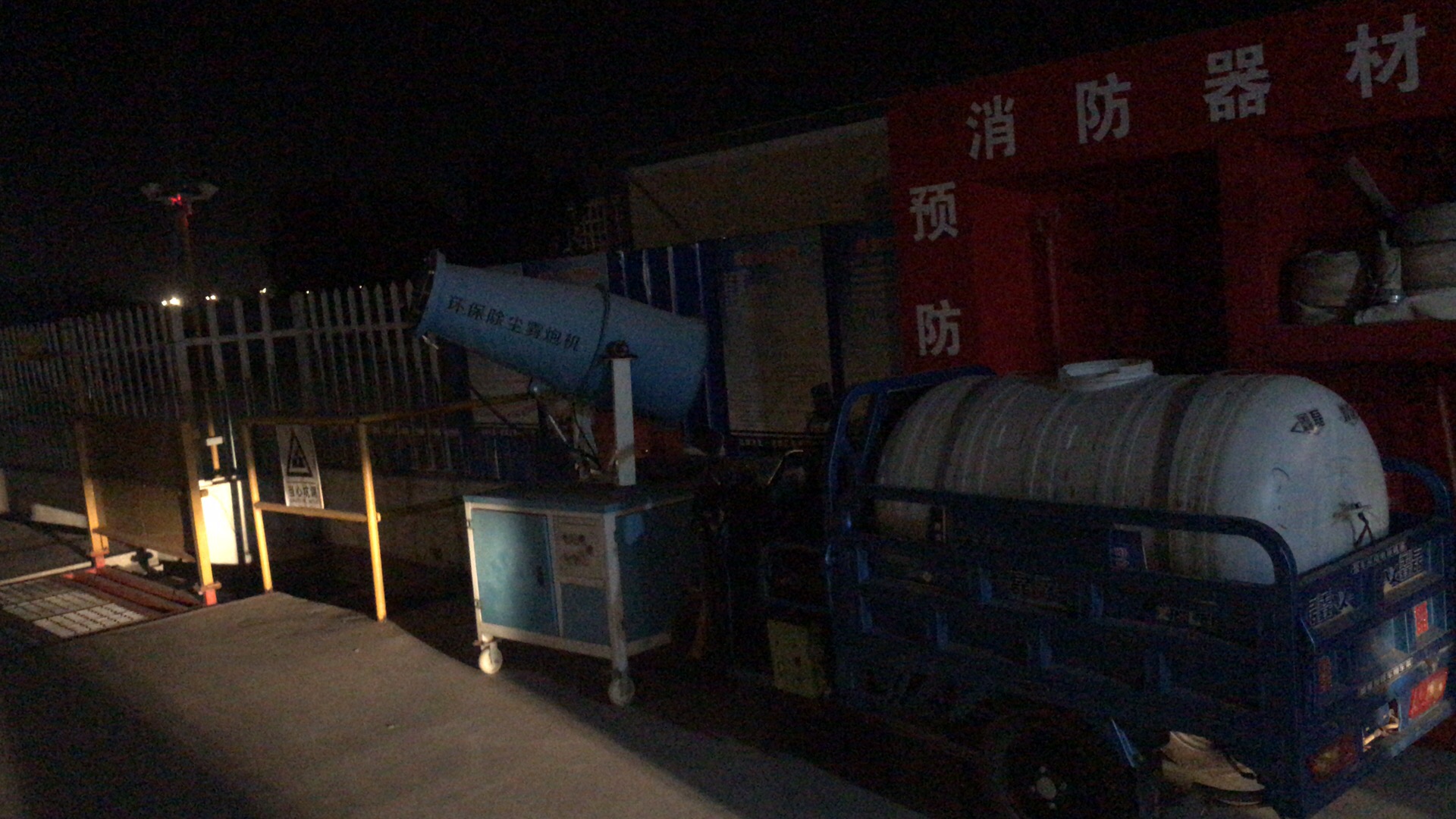 在雨露花園二期出入口,一臺(tái)噴射出大片白色水霧的機(jī)器十分引人注目。“這是我們控制揚(yáng)塵的得力武器。”項(xiàng)目負(fù)責(zé)人王昌盛自豪地說:“這臺(tái)機(jī)器叫做霧炮機(jī)。工地行駛的大型車輛很容易帶起大量的塵土,霧炮機(jī)通過風(fēng)機(jī)的風(fēng)量和風(fēng)壓將水霧化后噴射出來,水霧與空氣中的粉塵凝結(jié)后降落,從而達(dá)到控制揚(yáng)塵的目的。與傳統(tǒng)方式相比,霧炮機(jī)發(fā)射的水霧還能增加空氣濕度,細(xì)小的霧珠也不會(huì)淋濕來往行人的衣物。”