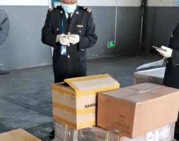 一批韓國新羅免稅店“尖貨”正在海關(guān)查驗放行到展廳參展
