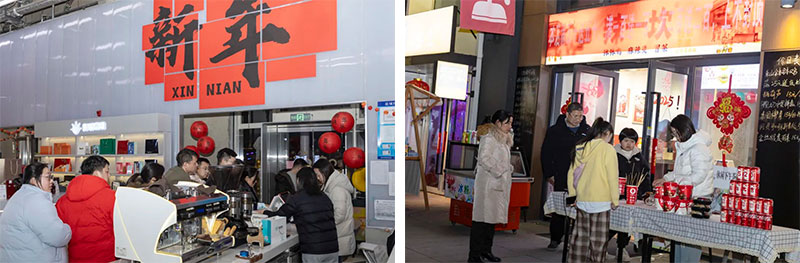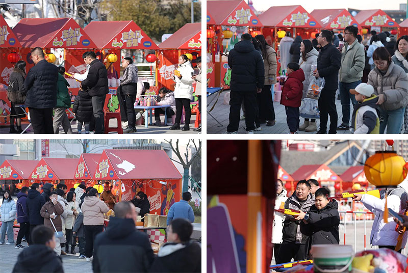 東大門街區(qū)南門噴泉廣場,節(jié)日期間“好巳發(fā)生”新春市集排隊(duì)隊(duì)伍已經(jīng)逐漸拉長,濃濃的年味撲面而來,年畫拓印、手作文創(chuàng)、親子游樂、特色美食……裊裊“煙火氣”吸引著眾多市民游客沉浸其中。